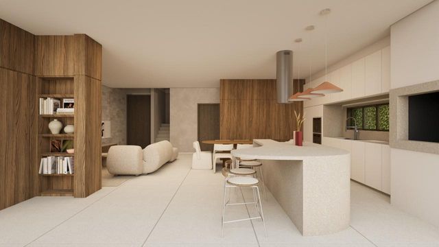 👉Pavimento inferior é sala integrada com espaço gourmet.